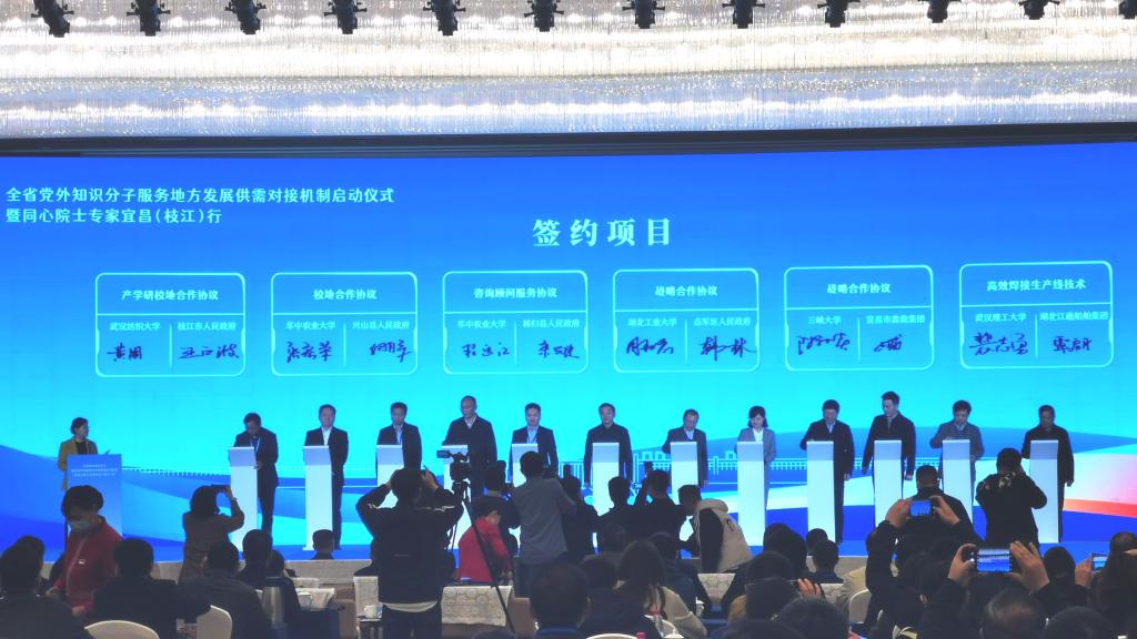 活动现场发布了《全省党外知识分子服务地方发展供需对接机制(试行)》。来自省内高校、科研机构的专家教授与宜昌各县市区签约项目39个。副校长陈和春,校知联会会长、无党派人士杜轩,生物与制药学院教授陈发菊等分别与宜昌市、宜都、五峰企业进行了现场签约。