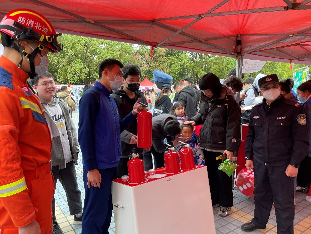 消防安全主题展棚内,保卫人员和消防官兵联动,组织同学们参与模拟灭火体验。消防官兵向大家讲解了各类灭火器的使用范围和灭火器的正确使用方法。同时,保卫处人员就校园生活中的各类火灾隐患以及各种防火措施进行了详细的说明,并向大家发放了《共赏桃花美景 共建平安校园》消防安全宣传手册。使同学们在文明赏花的同时,有效提高了消防安全意识和消防技能水平。