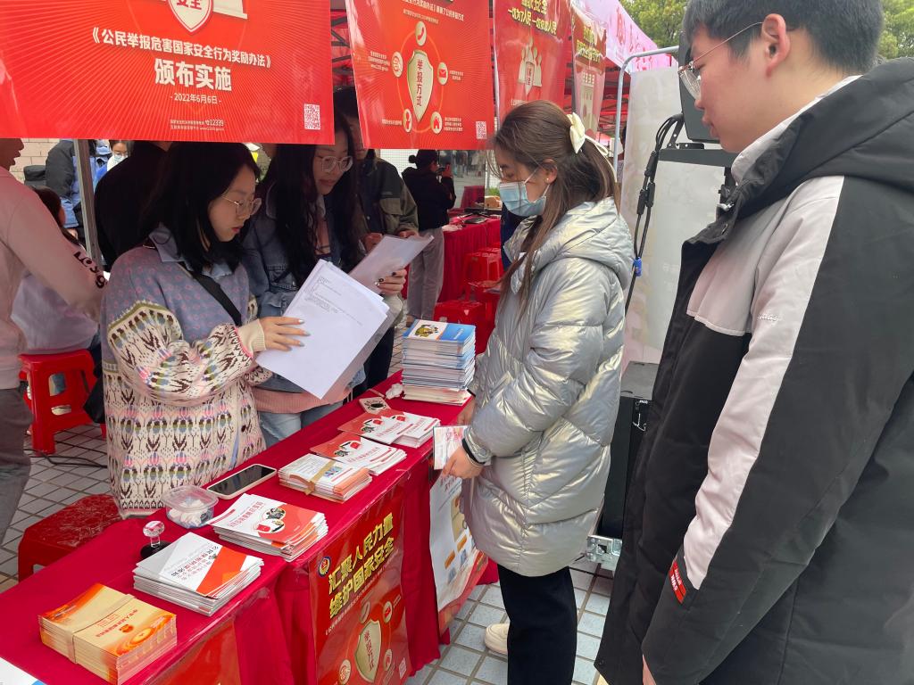 国家安全主题展棚内,保卫处联合宜昌市国保大队民警,以国家安全图解的形式向同学们发放宣传资料,广泛宣传《国家安全法》《反间谍法》等。通俗易懂的宣传内容,树牢了师生总体国家安全观,进一步推动国家安全的入脑入心。