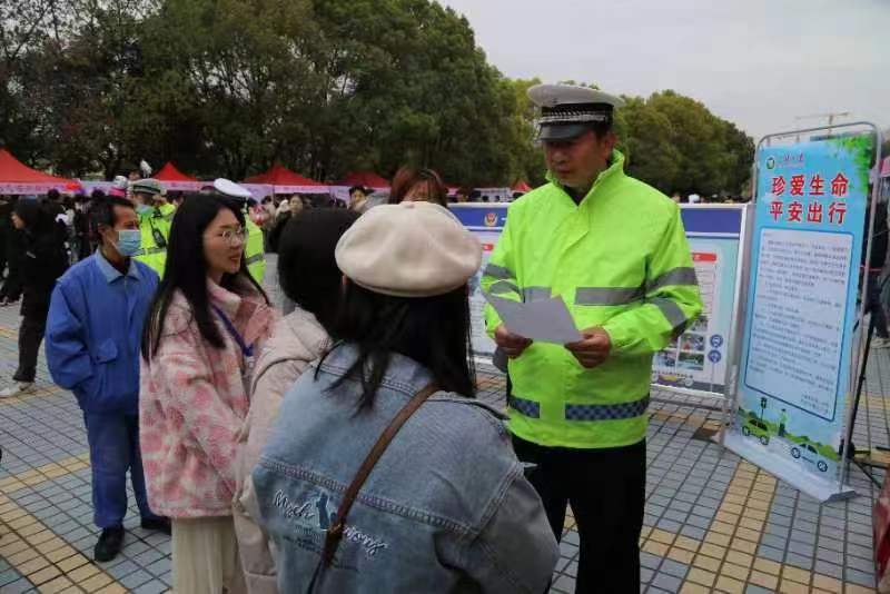 交通安全主题展棚内,保卫人员针对近期师生讨论比较热烈的大学路维修改造进行了政策宣传。保卫人员还和交通警察一起向师生们开展交通安全知识宣传,引导师生文明驾驶、文明出行。现场同学们深刻地认识到交通安全的重要性,纷纷表示将在日后的学习、生活中,自觉践行文明交通,争做文明交通典范。
