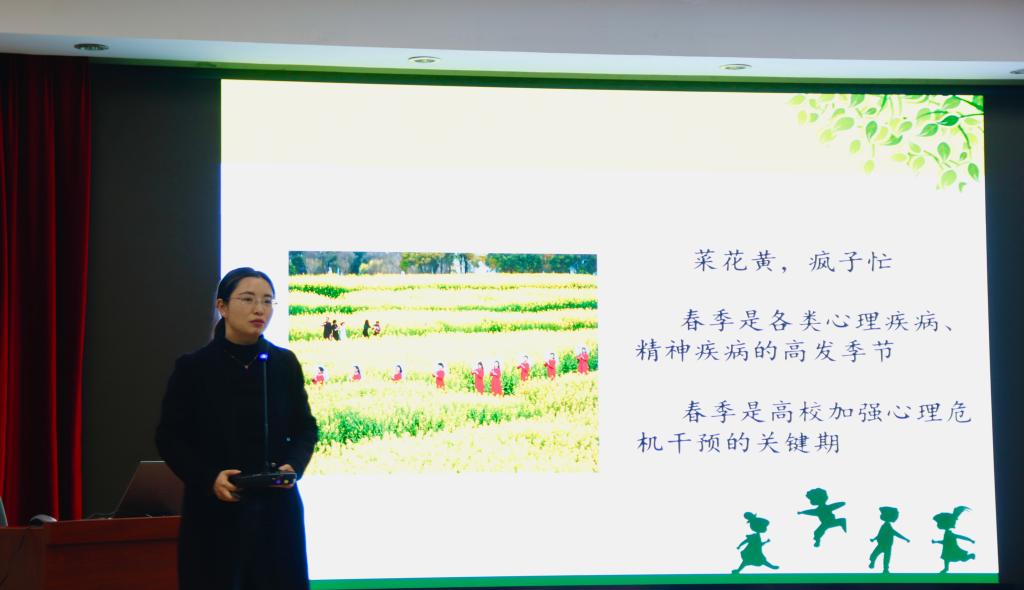 随后,学校心理咨询中心主任、心理学专家陈艳为全校辅导员作了题为“春季心理危机的识别与预防”的培训,从正确认识心理危机、精准识别心理危机征兆、辅导员在心理危机预警中的作用等方面进行了系统的讲解。此次培训提升了辅导员在一线工作中精准预警、识别心理危机的能力。