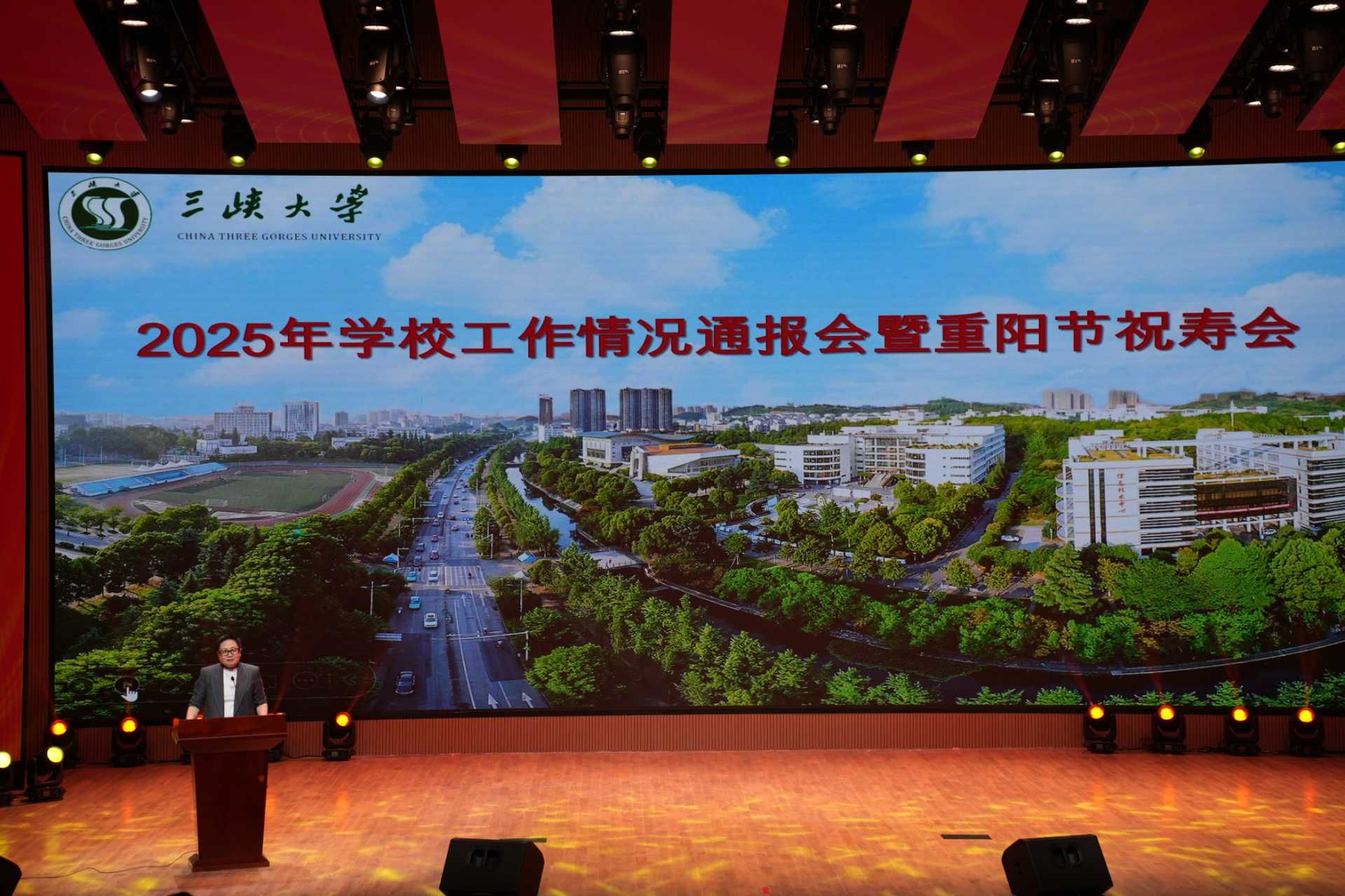 本网讯(通讯员 李冬梅/文 黄飘 王婧铱/图) 10月30日下午,我校2025年学校工作情况通报会、重阳节祝寿会暨文艺汇演在生材楼1号报告厅举行。校领导何伟军、黄艳、李红、王乐华、谈云志出席活动。