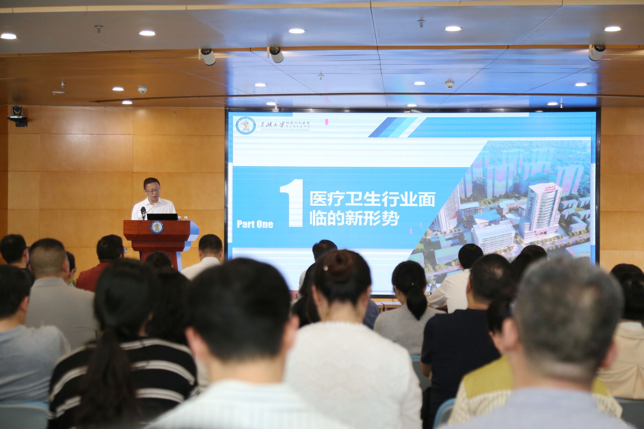 医院党委副书记、院长黄晓飞以《聚焦瓶颈 勇破困局 精耕细作 提质增效:全面开创医院高质量发展新格局》为题,深入解读医疗卫生行业新形势,剖析医院发展中存在的瓶颈问题,聚焦医疗质量与安全、学科建设与人才引育、精细化管理与运营三大核心驱动力,进一步促进医院内涵式发展和质量效益提升。