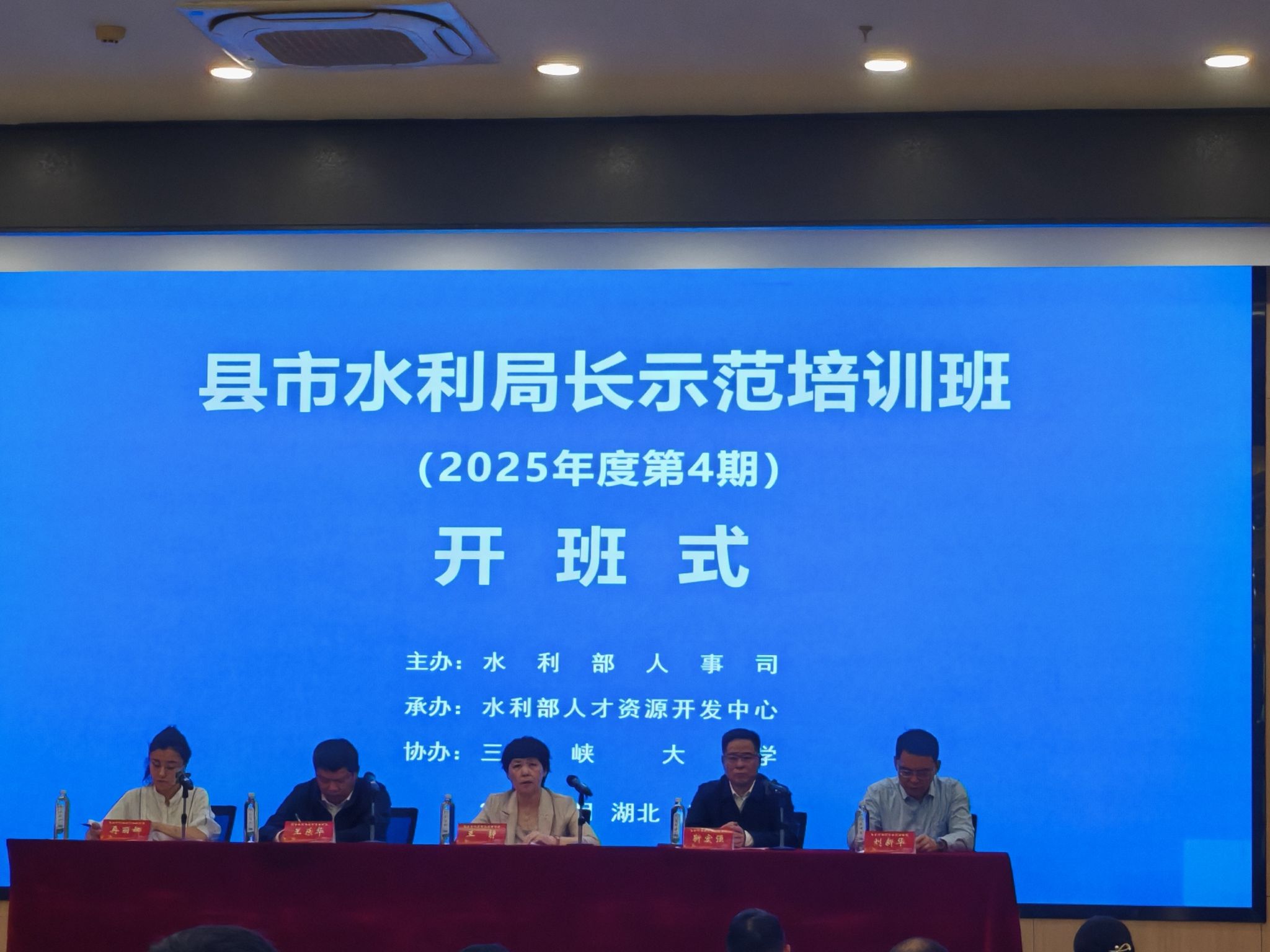 本网讯(通讯员 邬昊洋 向雷)9月22日-27日,由水利部人事司主办、水利部人才资源开发中心承办、三峡大学继续教育学院协办的县市水利局长示范培训班(2025年度第4期)在水科学与工程楼长江报告厅顺利举行。水利部人事司副司长、一级巡视员王静,宜昌市人民政府副市长靳宏强,三峡大学党委常委、副校长王乐华,继续教育学院党总支书记、院长刘新华等出席了开班仪式。开班仪式由水利部人事司人才与培训处副处长再丽娜主持,来自全国各县市水利(水务)局的70余名局长参加了开班仪式。