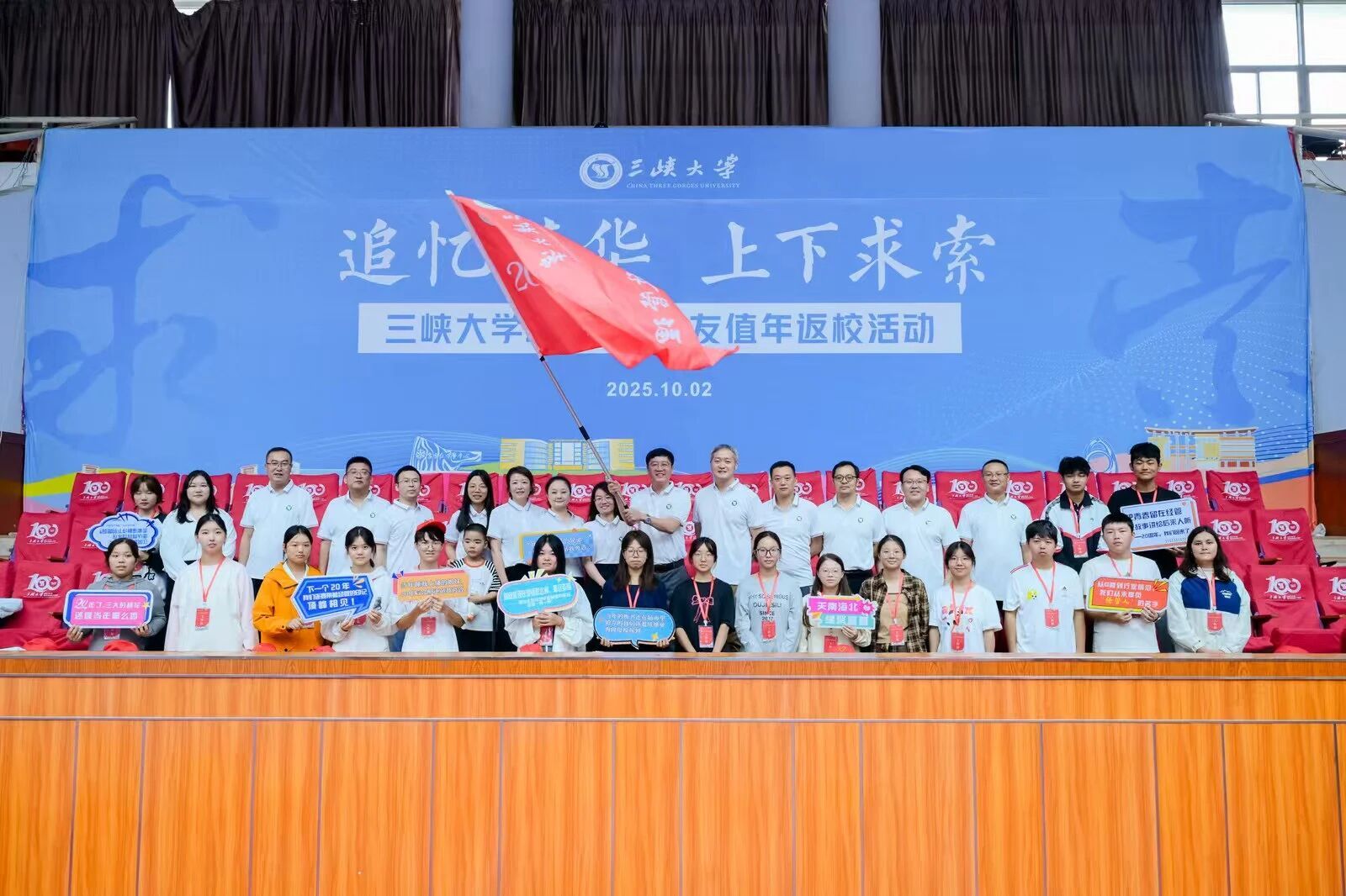 仪式上举行了返校班级授旗仪式,何伟军向各专业/班级代表授予承载着“求索”精神的旗帜。旗帜飘扬,不仅传递着母校对校友的深切期许,更象征着“三峡大学人”的精神血脉代代相承。