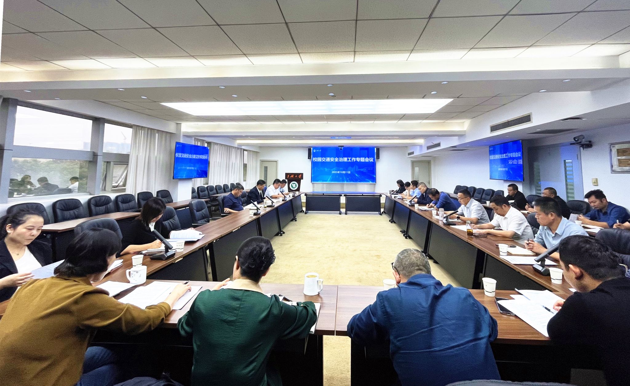 会上,保卫处就校园交通现状、管理措施及管控成效进行了汇报,并提出下阶段治理工作的设想与建议。学生处、校园规划建设处、后勤保障服务部分别围绕交通管控宣传落实、道路基础设施建设、学生公寓等重点区域车辆管理进行汇报。与会单位还就校园公共充电设施建设、停车位规划、智能交通管理、校园车辆准入机制等议题展开深入讨论,提出多项可行性建议。