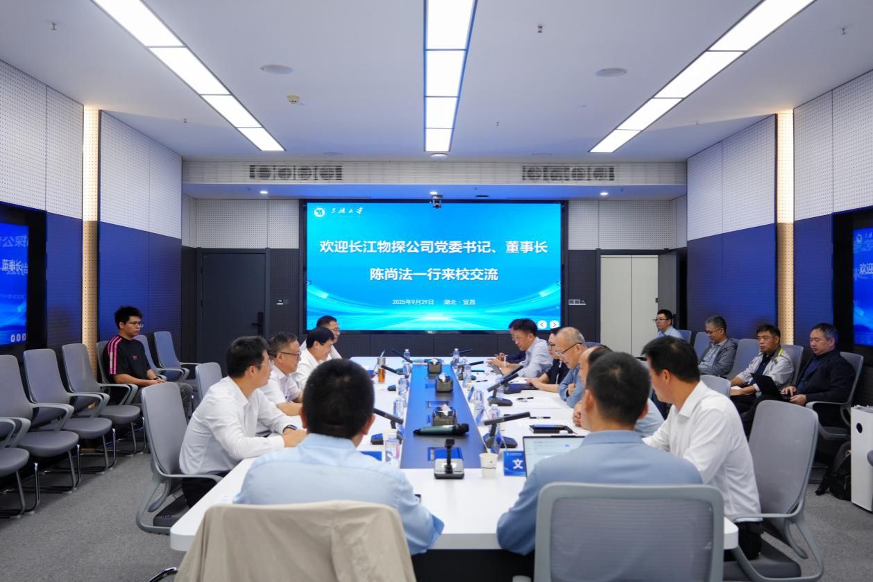 本网讯(通讯员 任强 张浩东/文 向跃/图) 9月29日上午,长江地球物理探测(武汉)有限公司(以下简称“长江物探公司”)党委书记、董事长、总经理陈尚法带队来访我校,就校企合作事宜进行深入交流。学校校长黄艳,党委常委、副校长李东升出席座谈会。